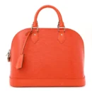 This Louis Vuitton Epi Alma PM in Piment stands out with its vibrant orange epi leather, accented with rolled leather handles and brass hardware. The dual zipper closure ensures easy access to a well-organized microfiber interior, perfect for daily essentials. This bag combines the structured silhouette of the Alma with the durability of Epi leather, reflecting sophisticated craftsmanship and iconic style.